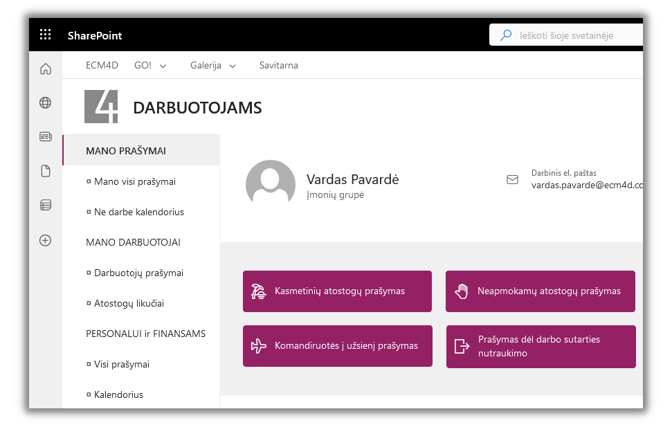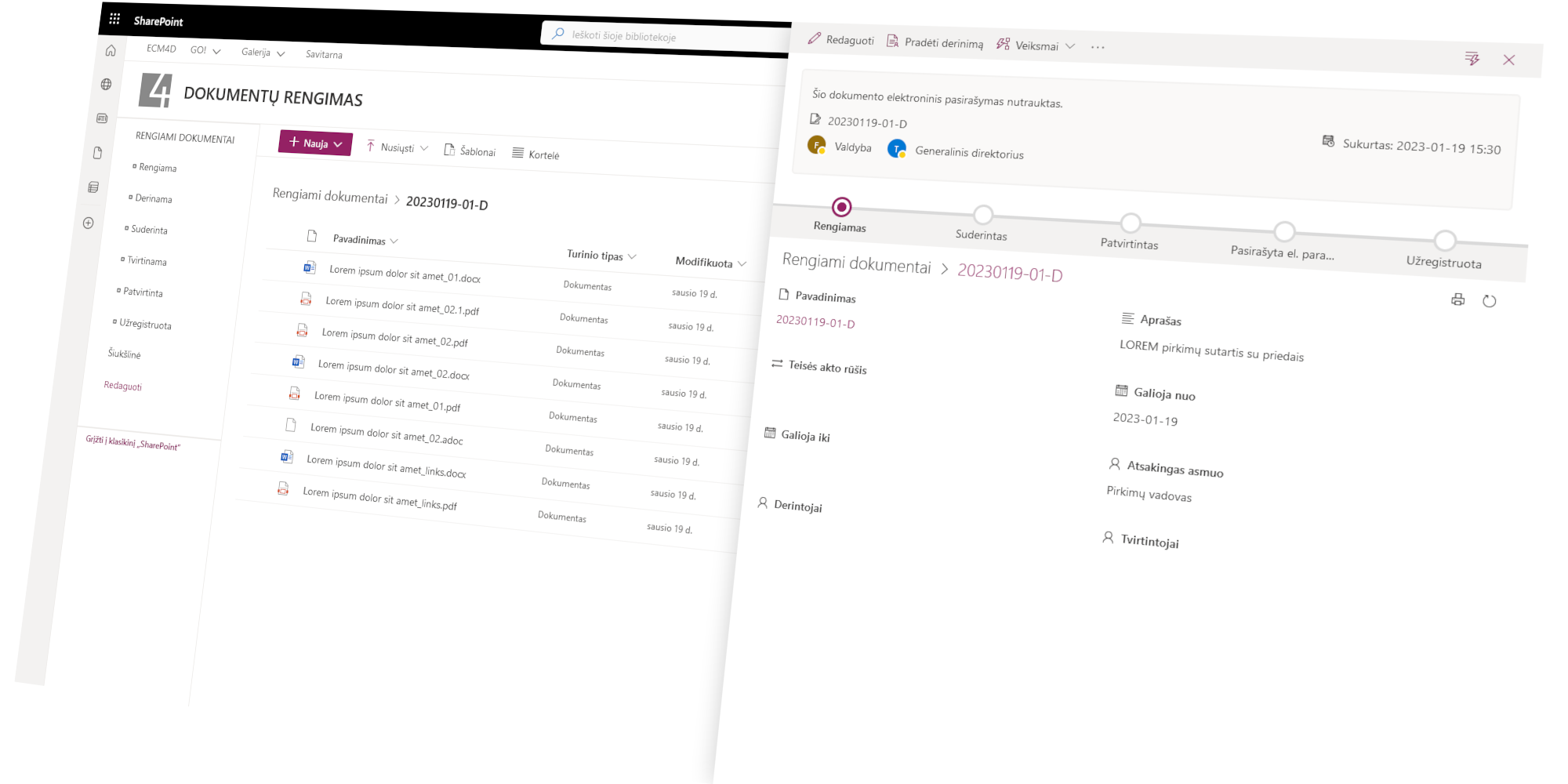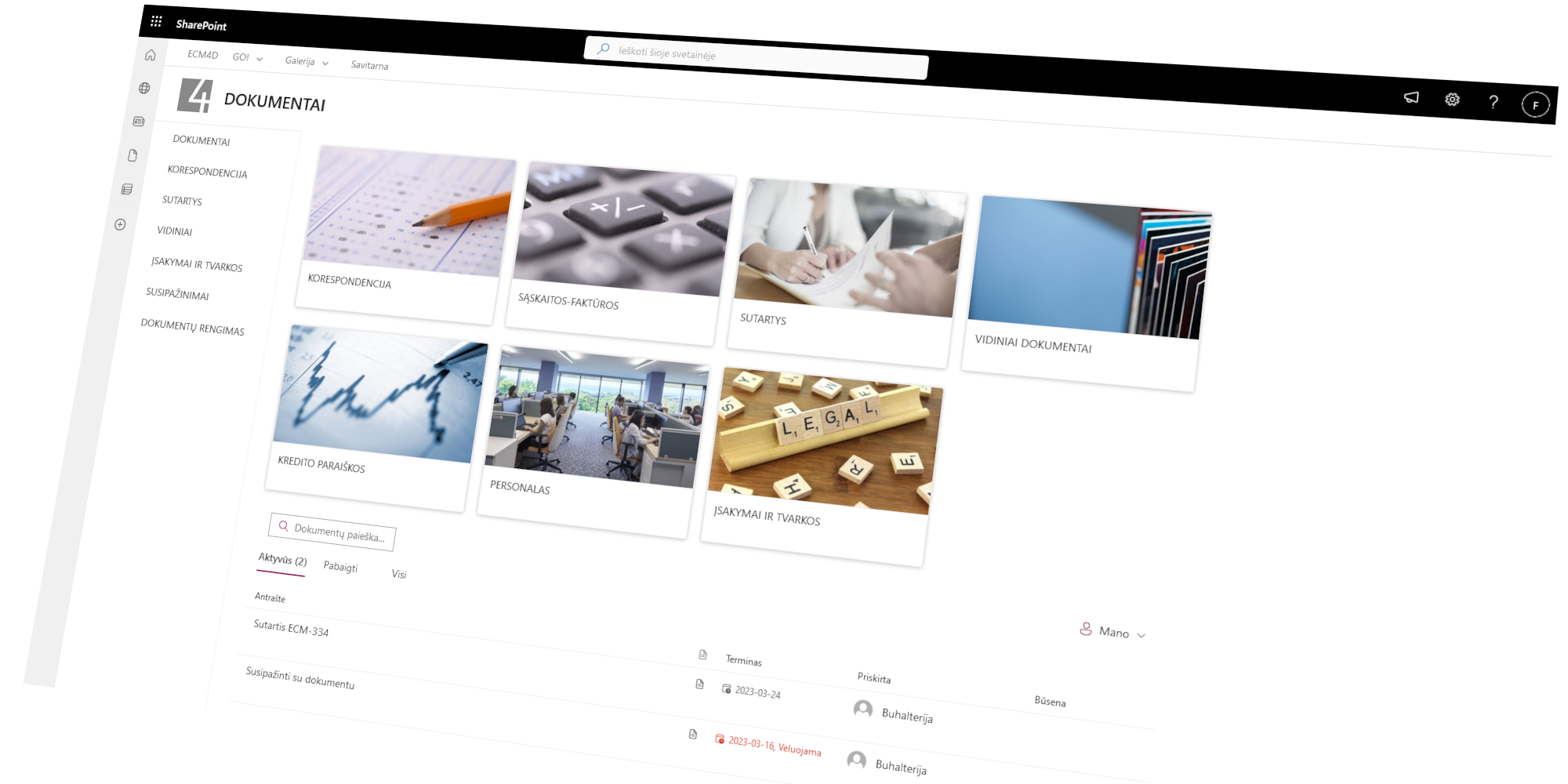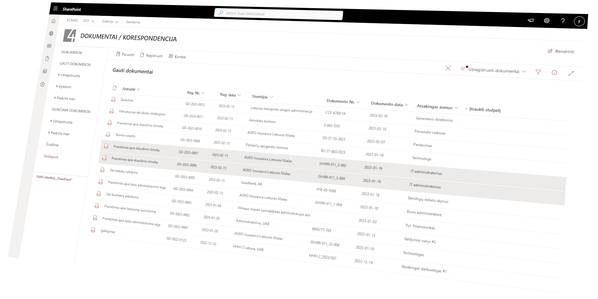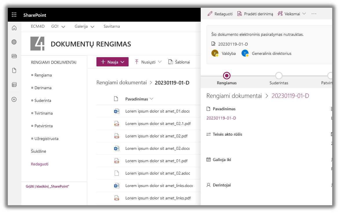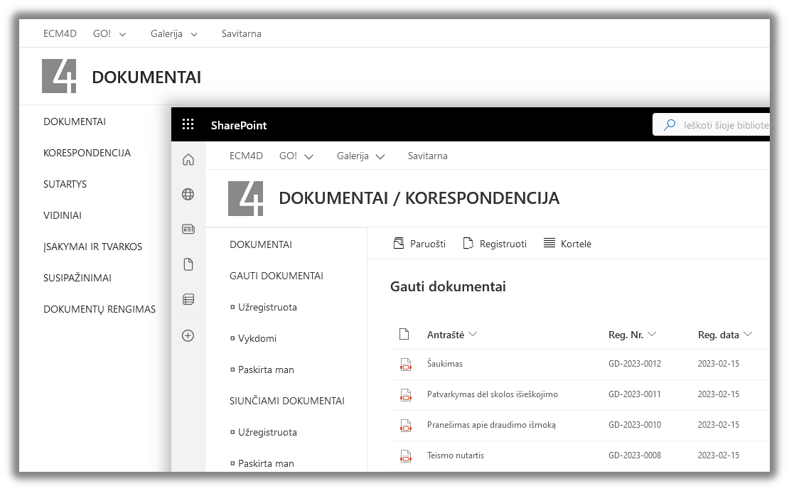 This module is designed for working with documents within the company. This includes the functions of classification, registration, accounting and archiving. The components are implemented in such a way that they fit well with the standard functionality of the SharePoint Online document library.