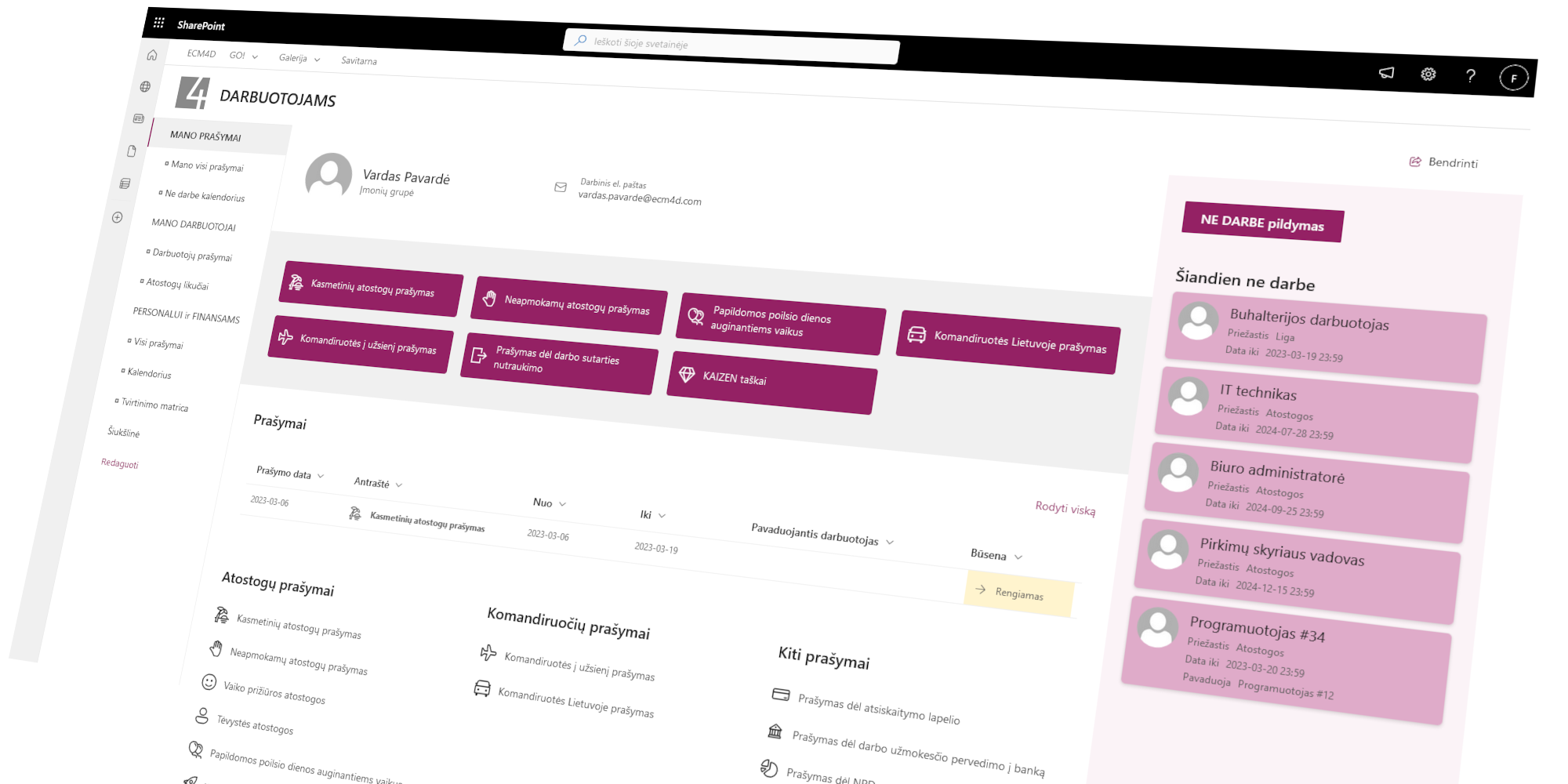 In the self-service module, staff can fill in a wide range of requests, from the usual leave or travel requests to specialised ones, such as KAIZEN points or parking space reservation requests. They can also check their leave balances and other employee information here.